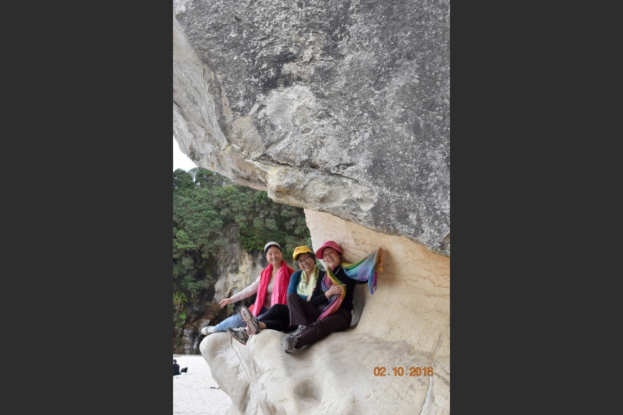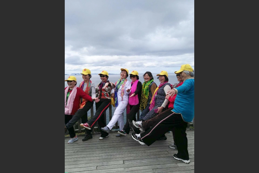 The association organized a tour group of more than 100 people. They took two buses and sang all the way to the famous Cathedral Cove and Hot Water Beach. The members are enthusiastic and full of energy, and they have been playing for the whole day.